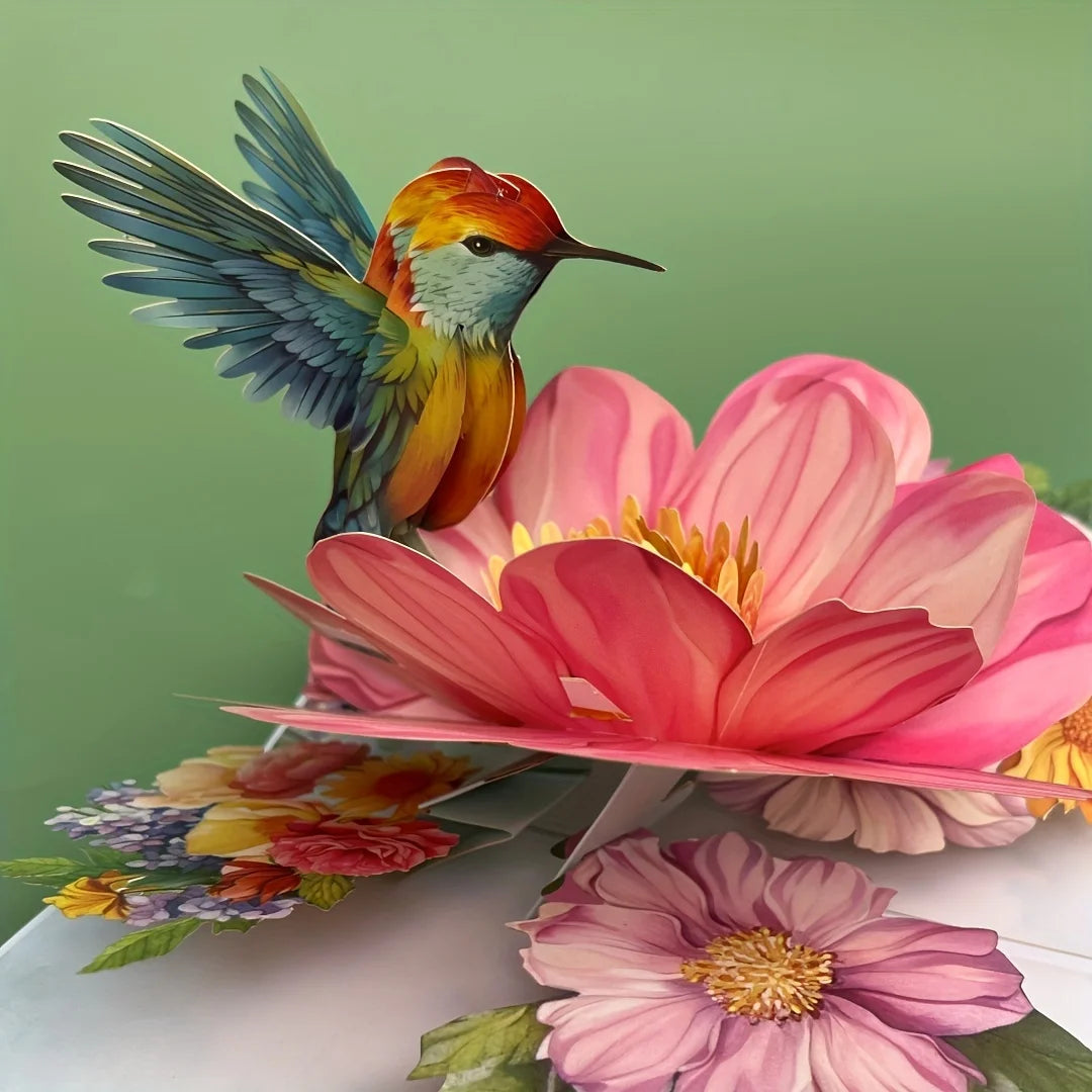 Diese 3D Pop-Up Blumen Grußkarte begeistert mit einem detailreichen, farbenfrohen Blumendesign und einem beeindruckenden Tiefeneffekt. Beim Öffnen entfaltet sich ein kunstvoll gestaltetes Blumenarrangement, das sofort für einen besonderen Moment sorgt.